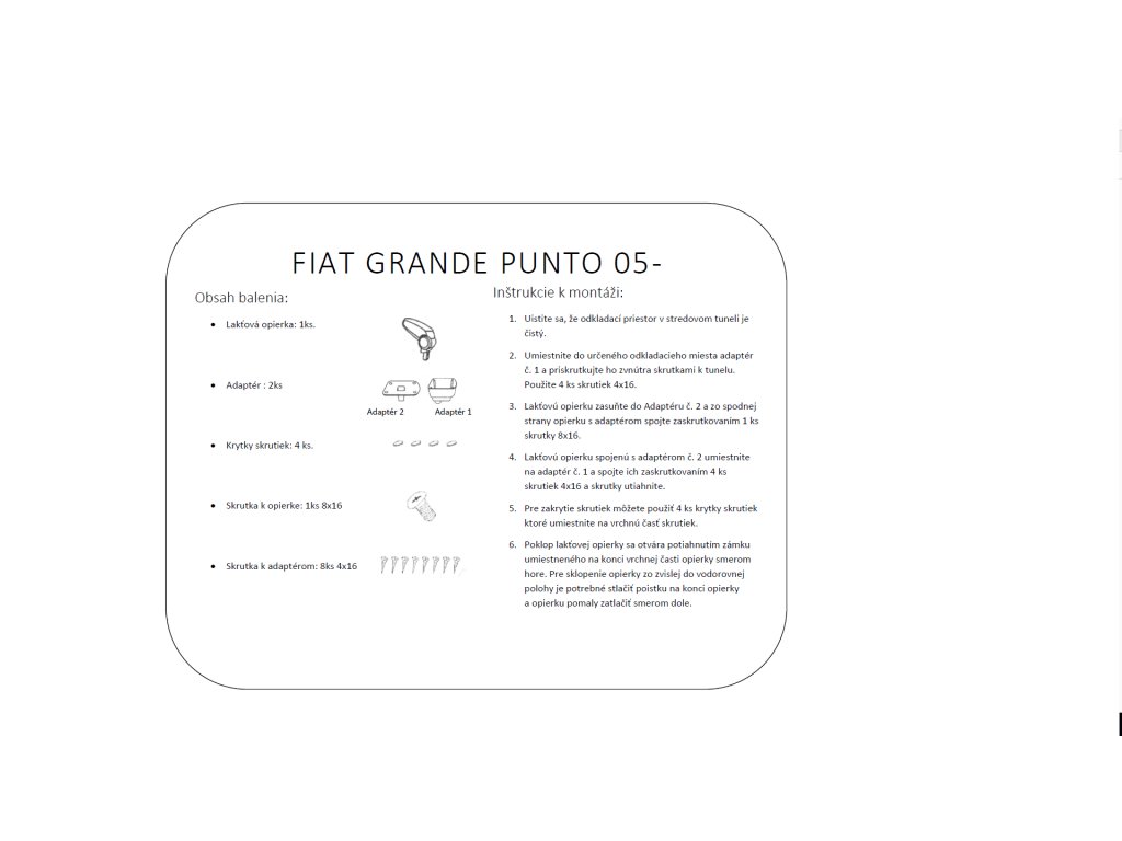 Lakťová opierka vyrobená pre Fiat Grande Punto + EVO od roku výroby 2005 do 2012.