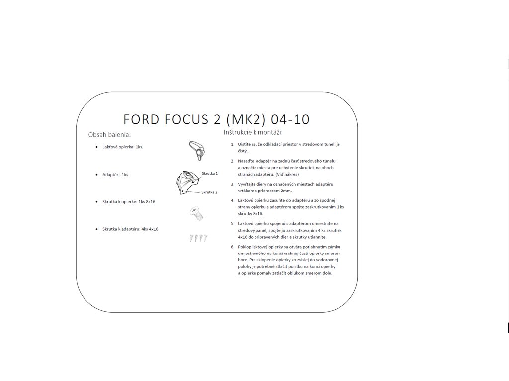 Lakťová opierka vyrobená Ford Focus II. generacie rok výroby 2004 - 2014.