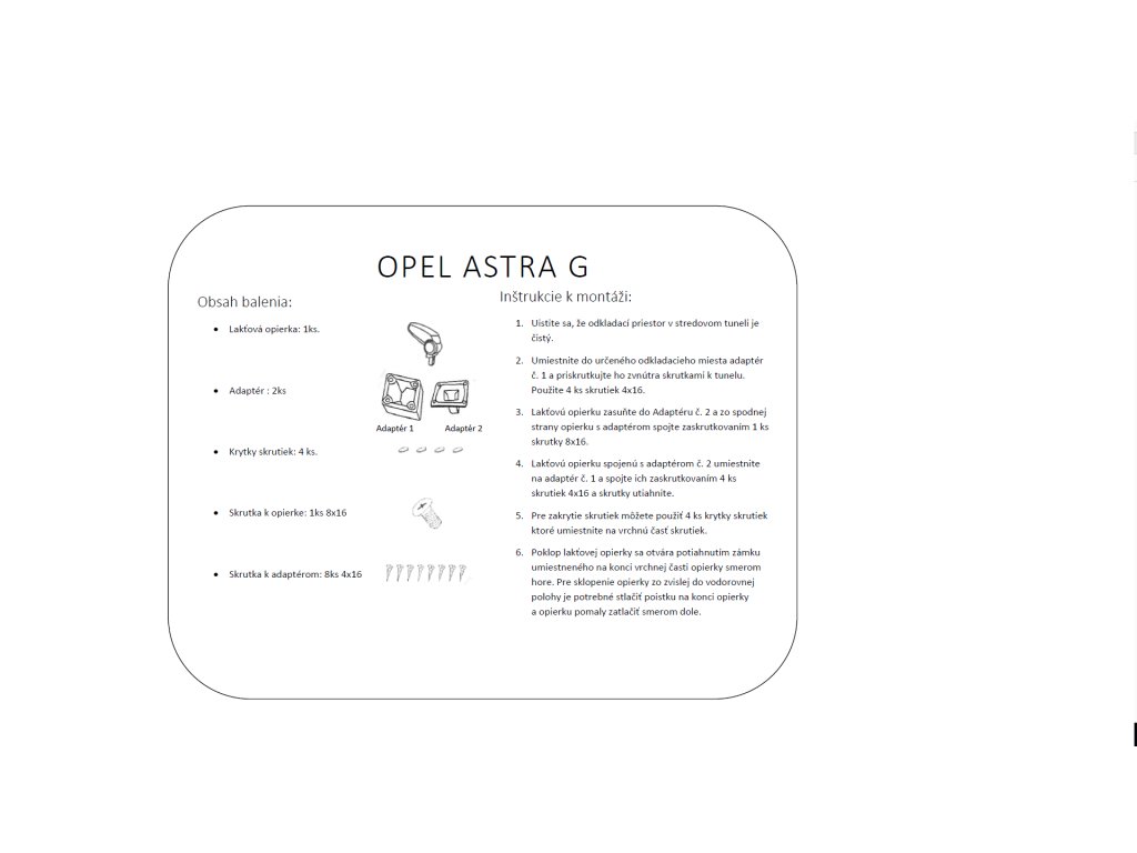 Lakťová opierka vyrobená pre Opel ASTRA 2. generácie model G v rokoch výroby 1998 - 2009.