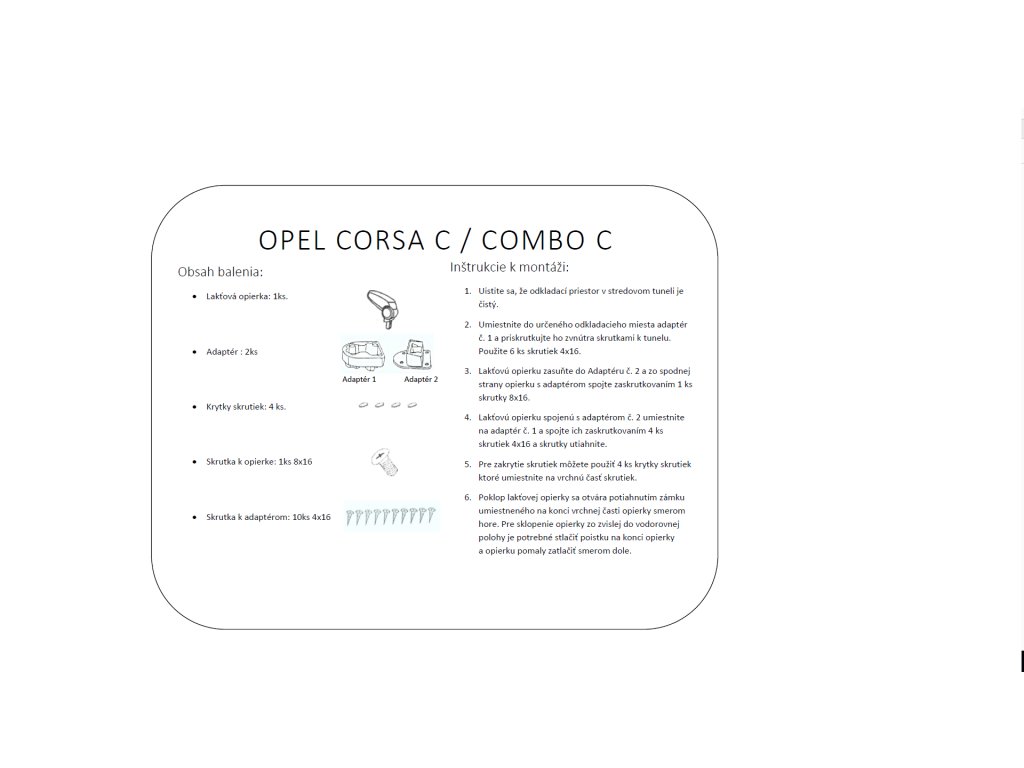 Lakťová opierka vyrobená pre Opel COMBO C od roku výroby 2001 do 2012.
