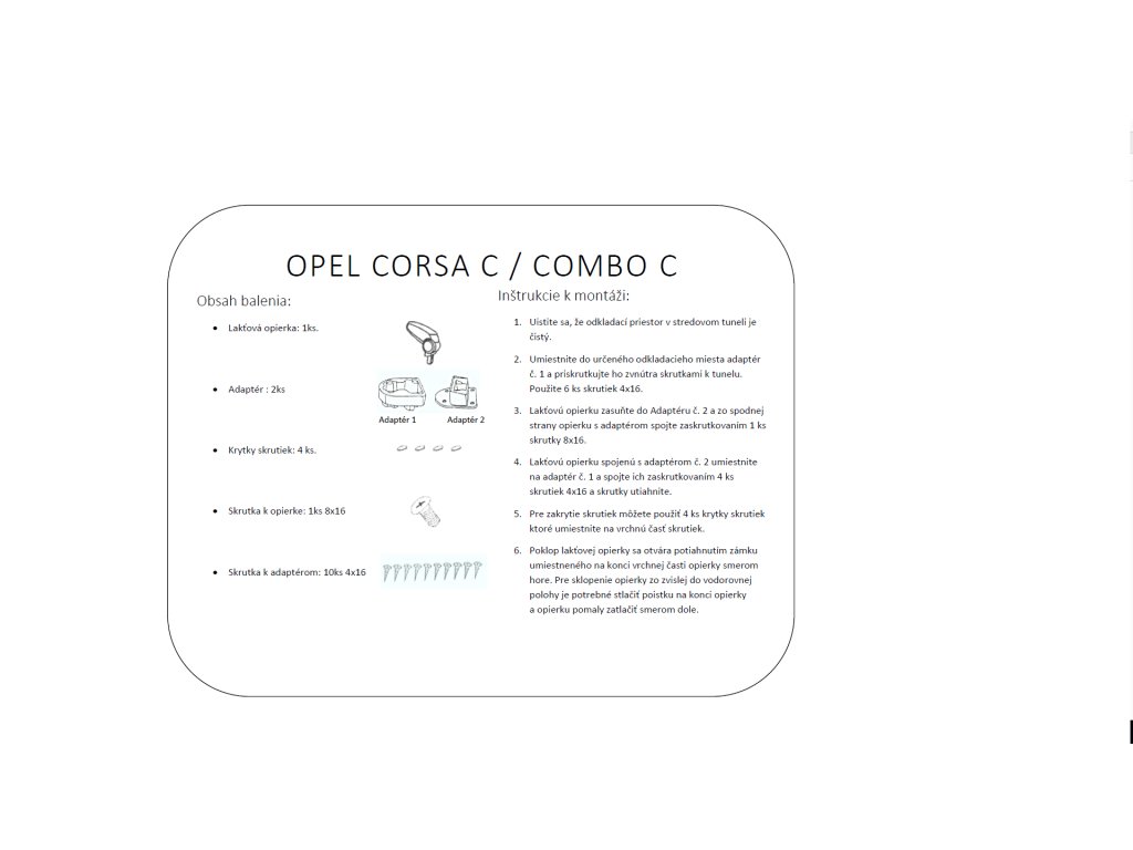 Lakťová opierka vyrobená pre Opel CORSA C od roku výroby 2000 do 2006.