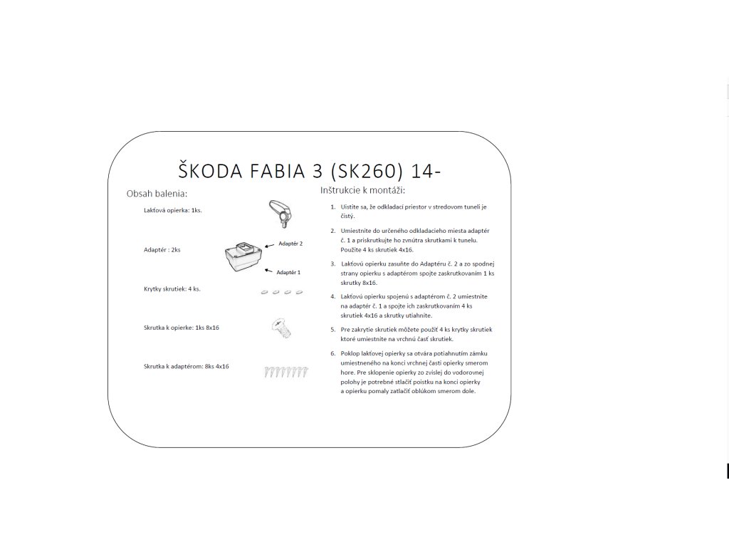 Lakťová opierka vyrobená pre Škoda Fabia III. generácie od roku výroby 2014 do 2021.