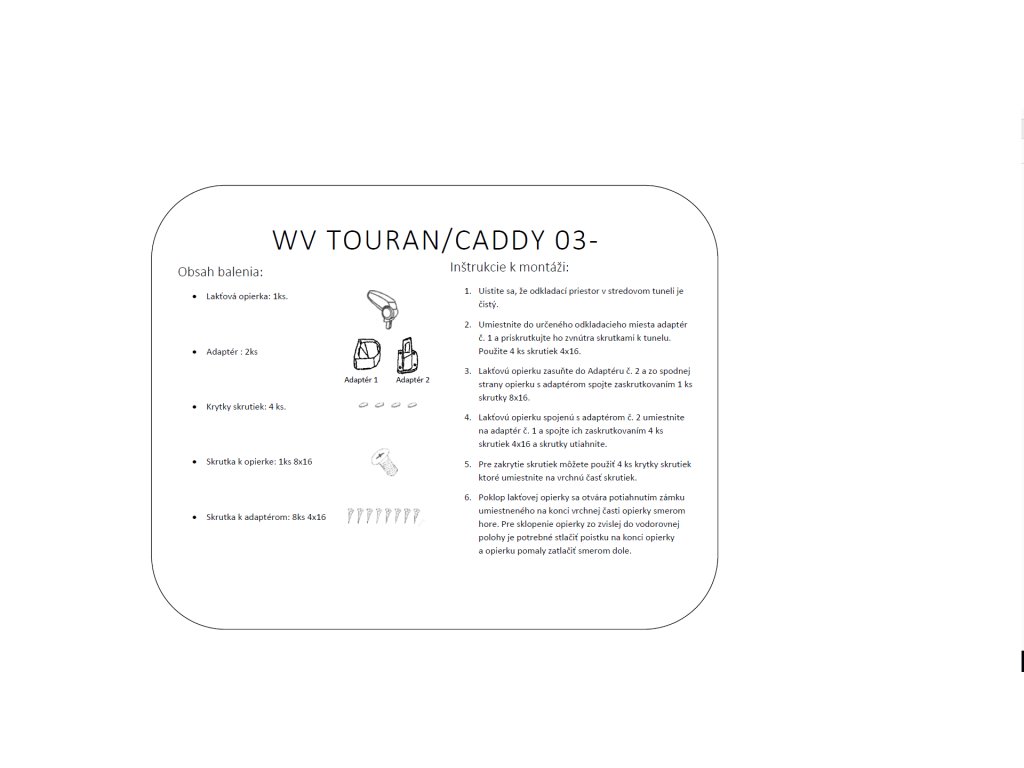 Lakťová opierka vyrobená pre VW Caddy 3. generácie s rokom výroby od 2003 do 2021.