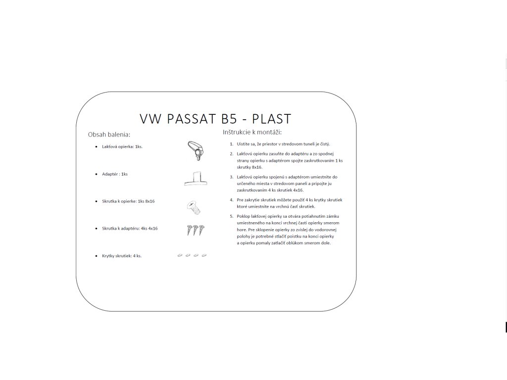 Lakťová opierka vyrobená pre VW PASSAT B5 Sedan a VW PASSAT B5 Variant, ktoré boli vyrábané v od roku 1996 do 2000.