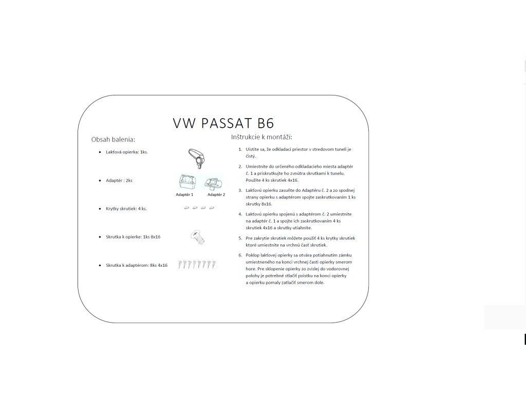 Lakťová opierka vyrobená pre VW Passat B6 od roku výroby 2006 do 2010.